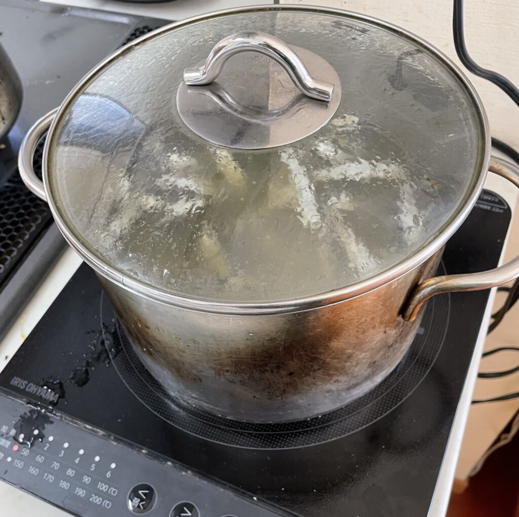 IHクッキングヒーターにて、90度で2時間じっくりと煮込みます。