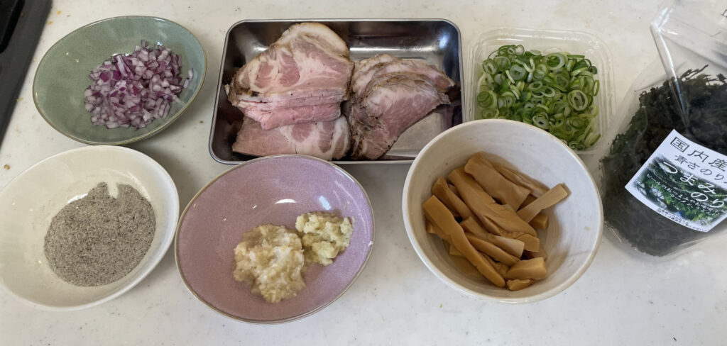 ラーメンに仕上げる際に必要なその他のアイテムも用意します。