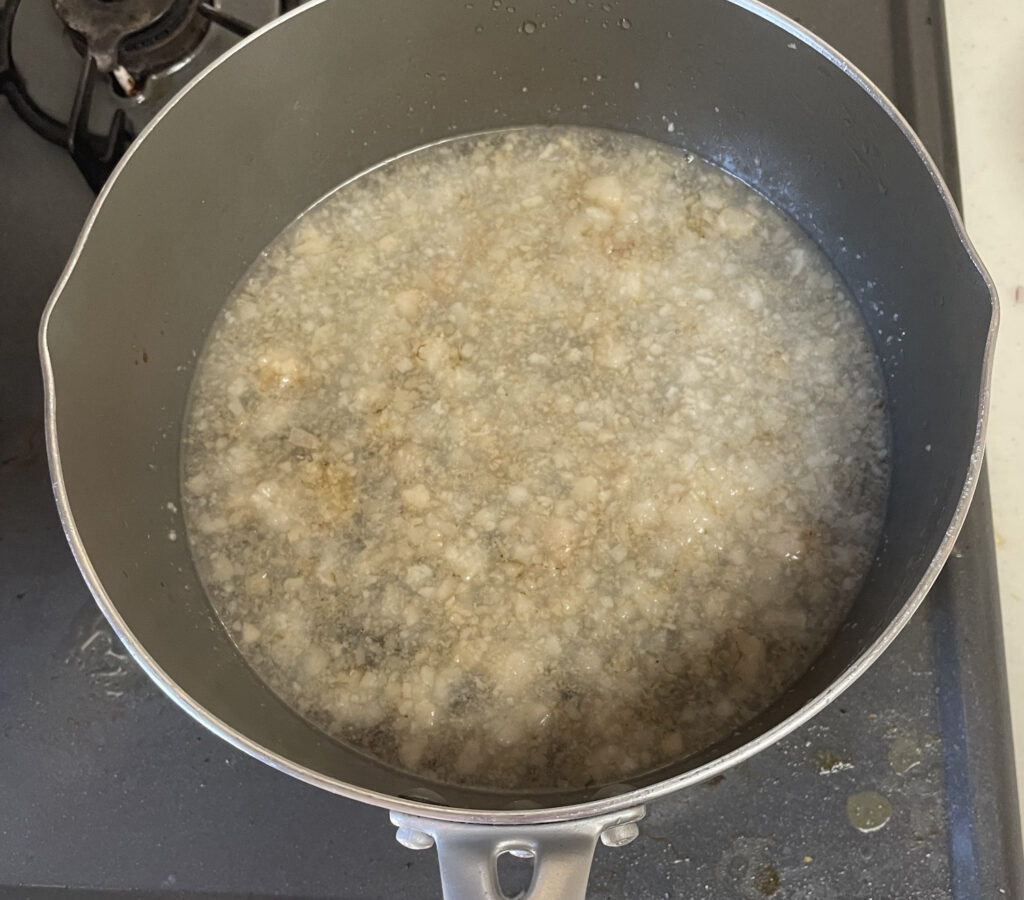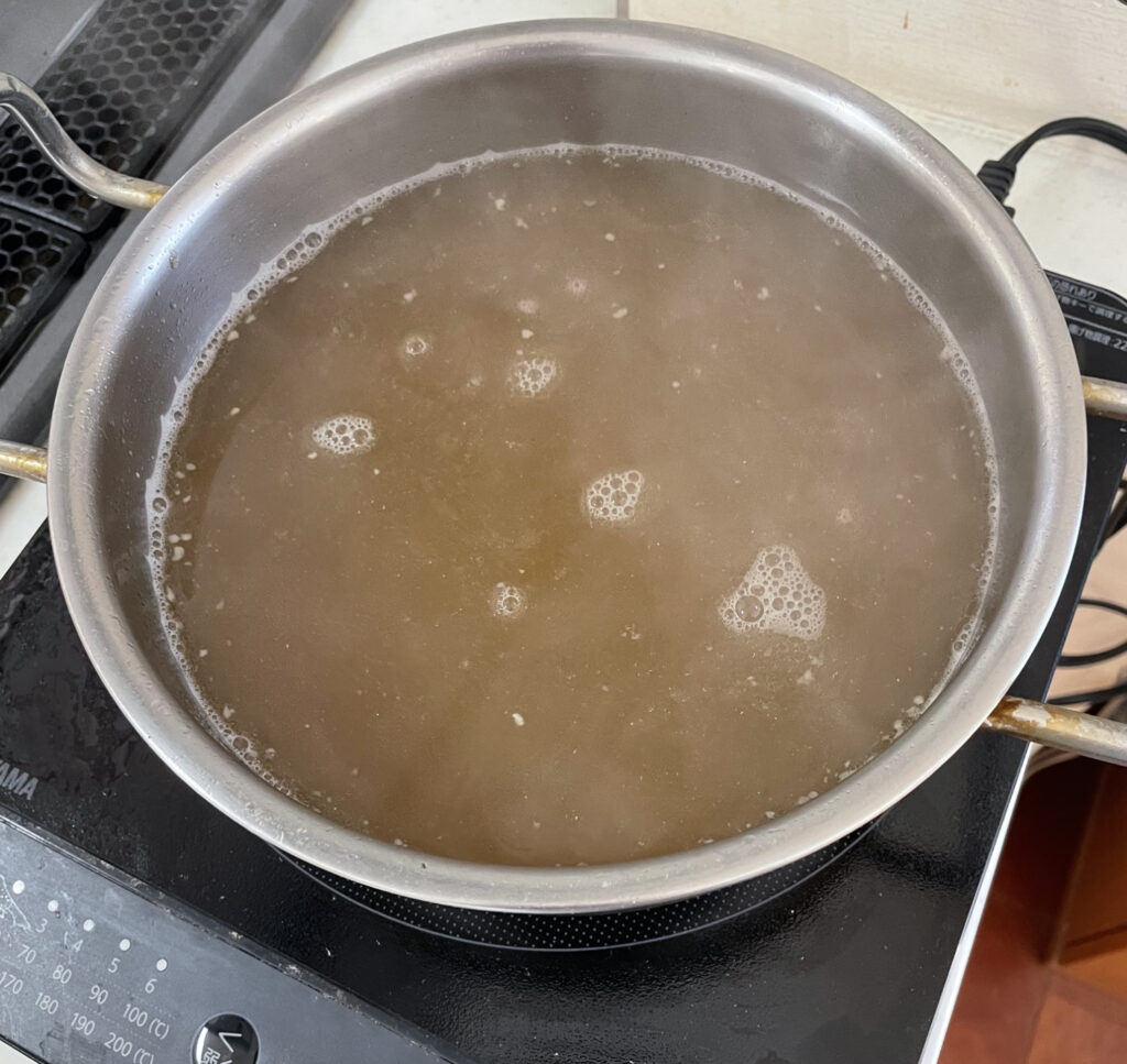 沸騰したら灰汁が出るので、ある程度綺麗に取り除いたら