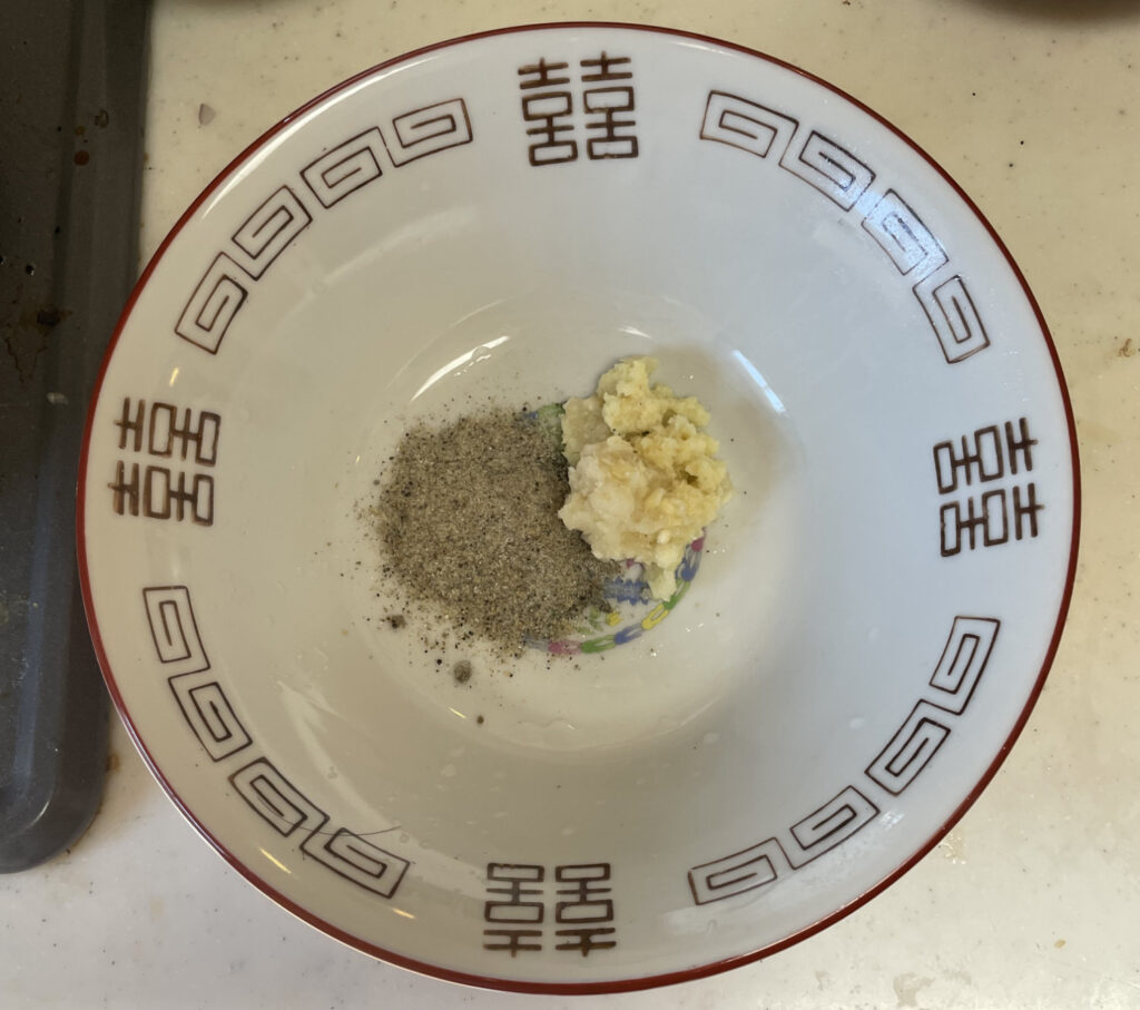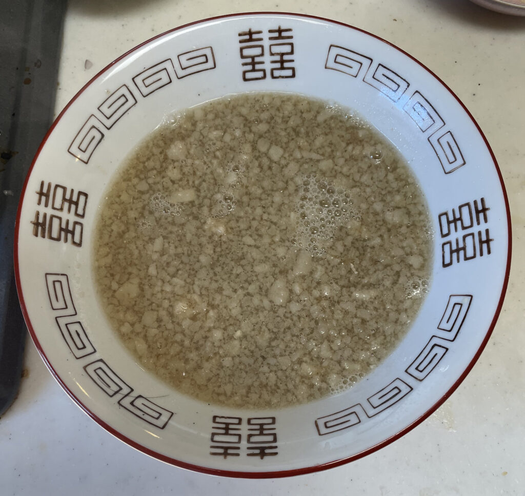 ⚫︎ラッキョとニンニクを同量ですりおろしたもの:仕上げの隠し味に使います。