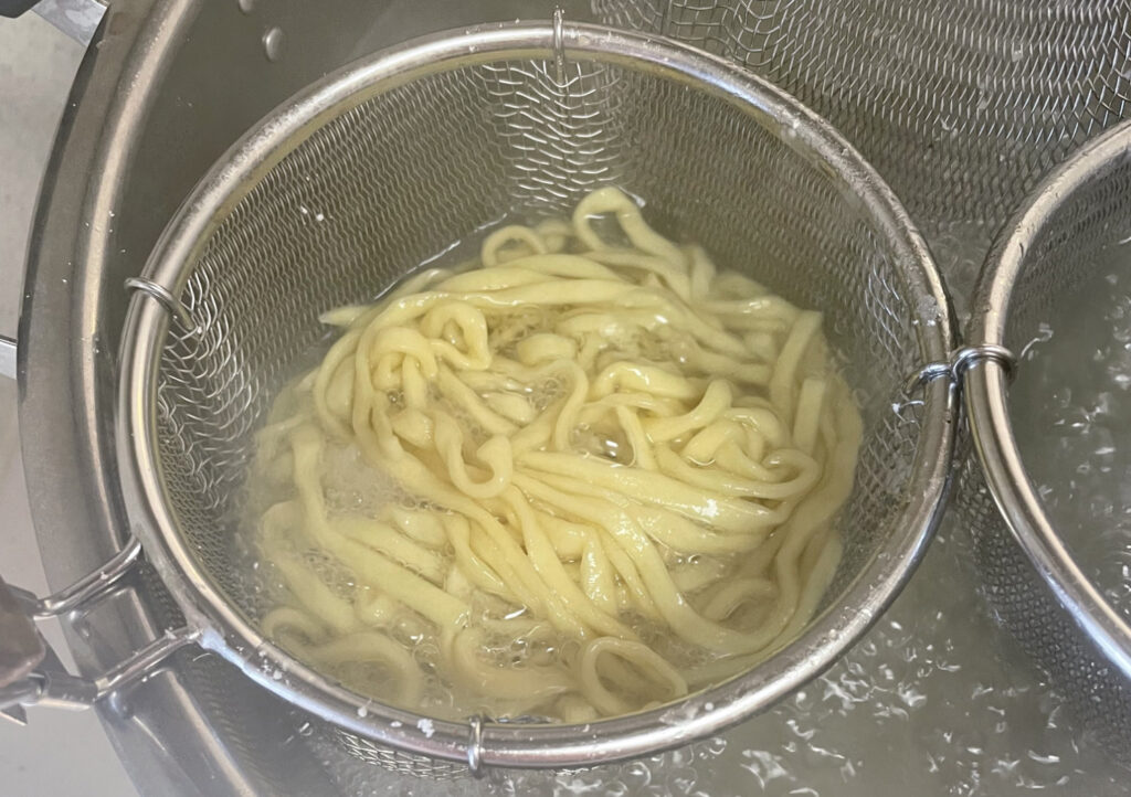 それではラーメンを作っていきます。まず麺を茹でます。茹で時間は5分30秒。